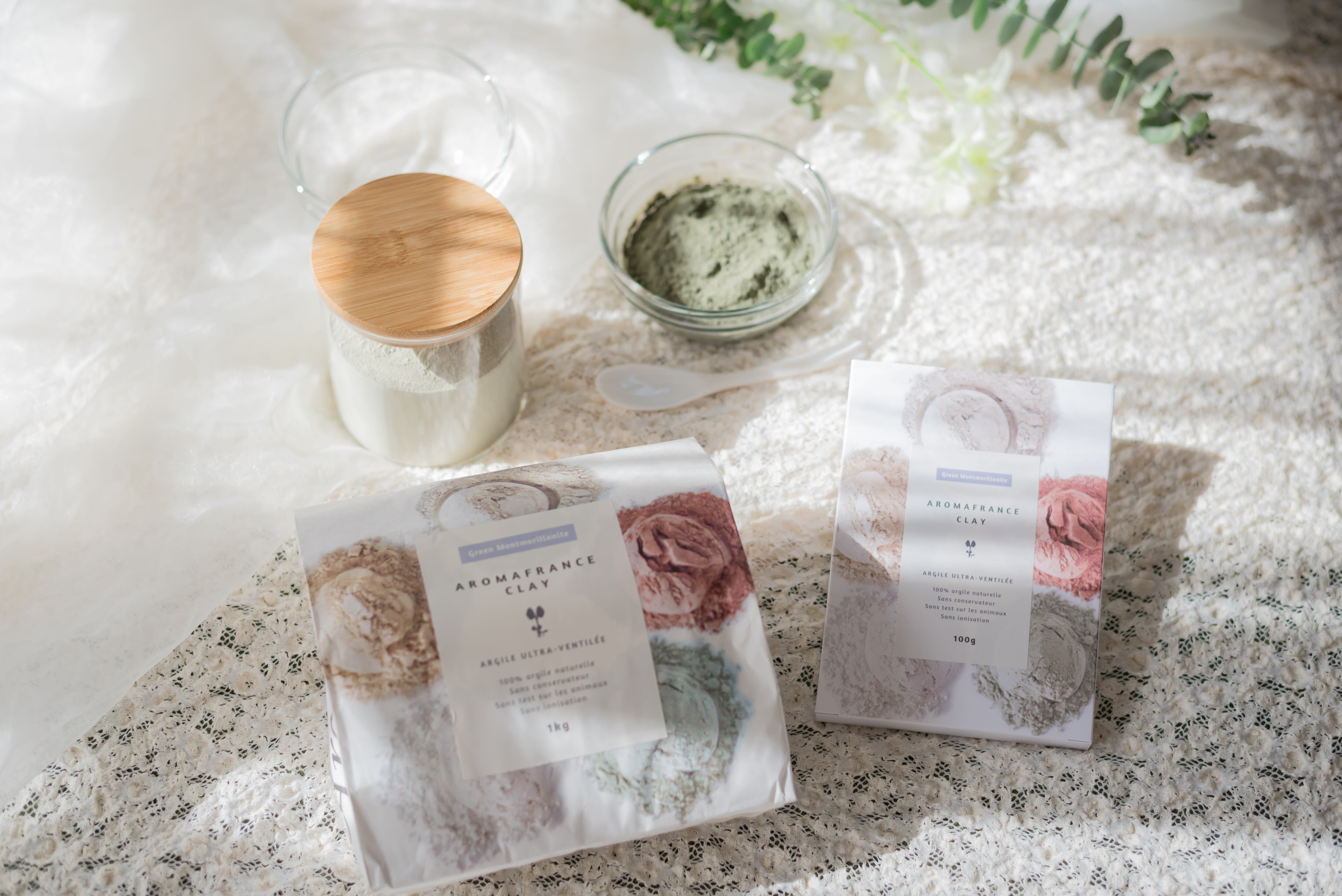 当サロンが取扱いをしているクレイは、アロマフランスのクレイです。純度がとても高く自然を大事にしたナチュラル100%のクレイです。